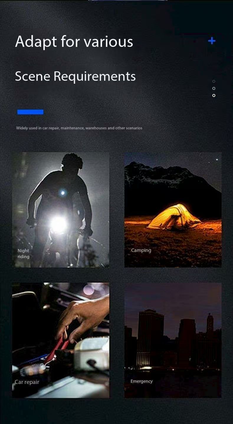 - The front light has a power of up to 2W, while the side light has a power of 1W, providing bright and even light for both outdoor adventures and emergencies.