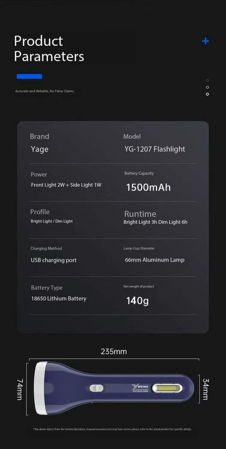 Choose the YAGER YG-1207 flashlight for peace of mind and convenience on every trip!