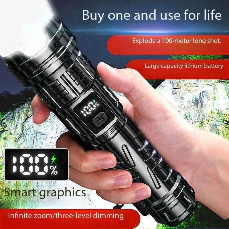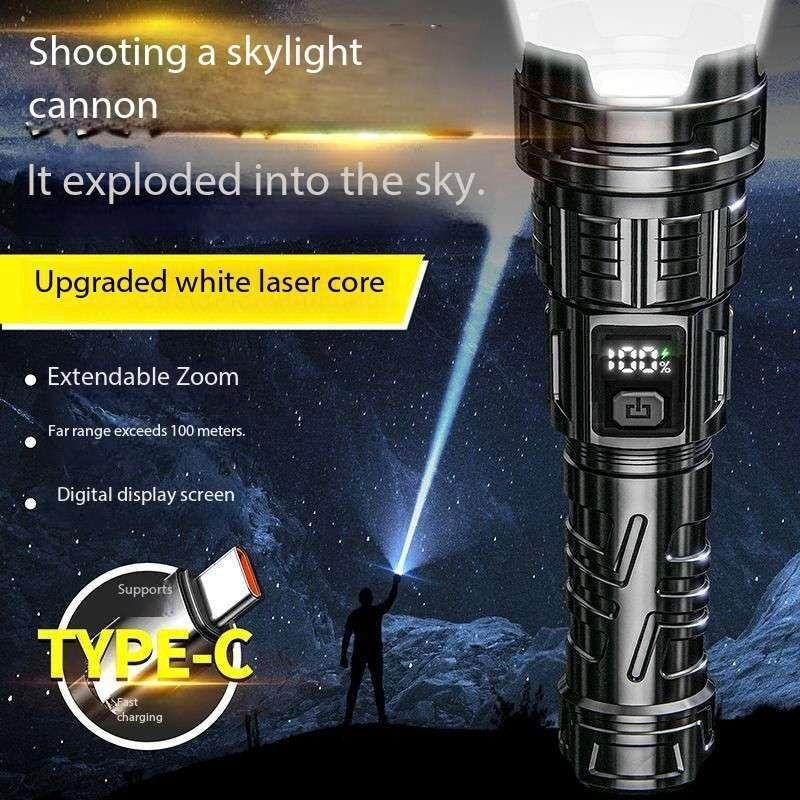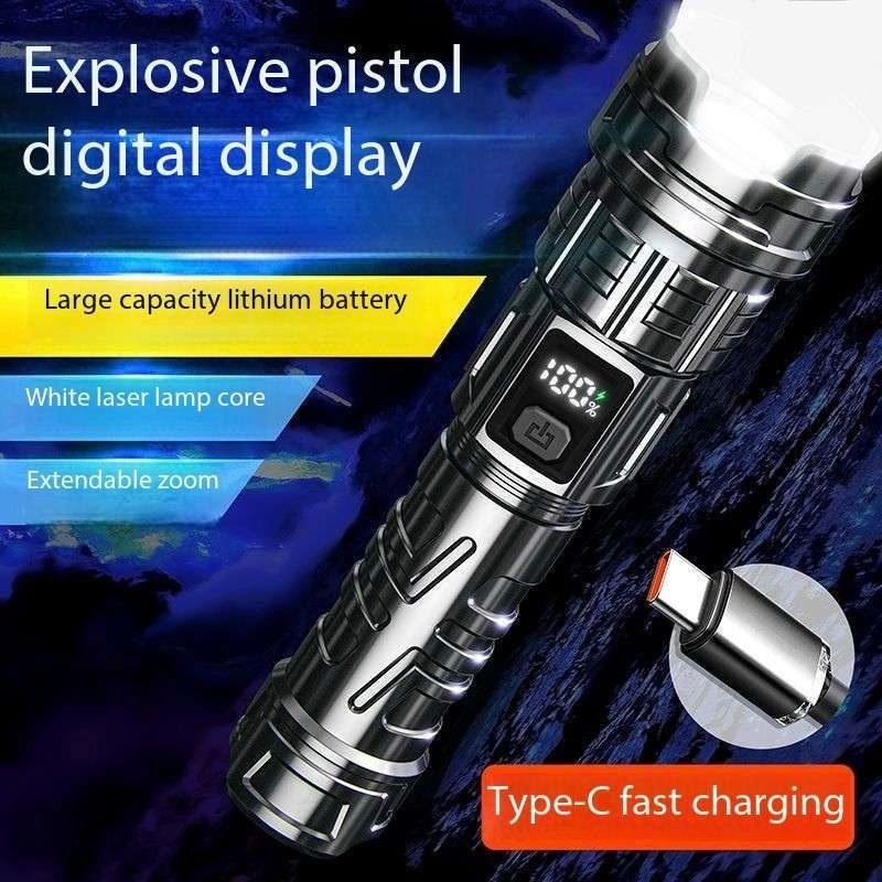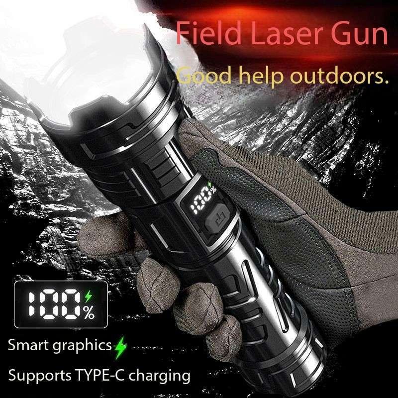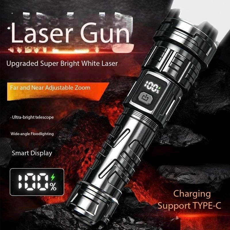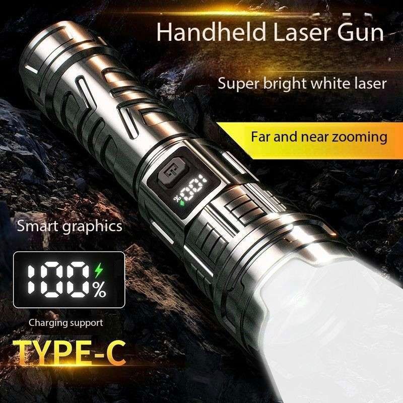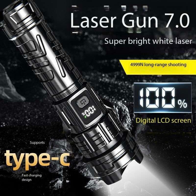 Laser Flashlight 7.0, illuminate your world!This Laser Flashlight 7.0 features a high-brightness white light design, efficient long-range shooting capability, and a high-tech digital LCD display. It supports USB-C fast charging for convenient charging. It also features a high-brightness laser function, smooth zoom adjustment, and a large-capacity battery for long-lasting battery life.