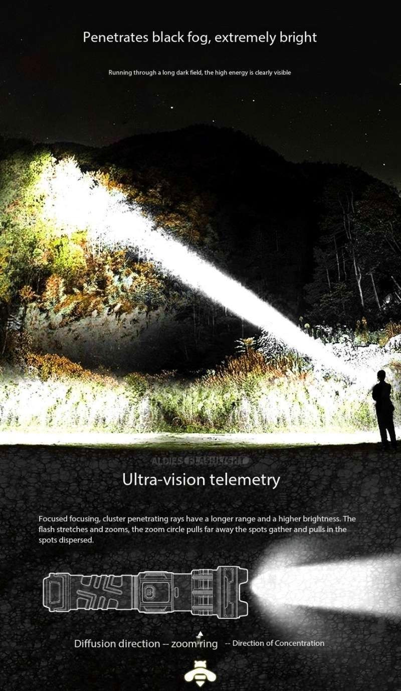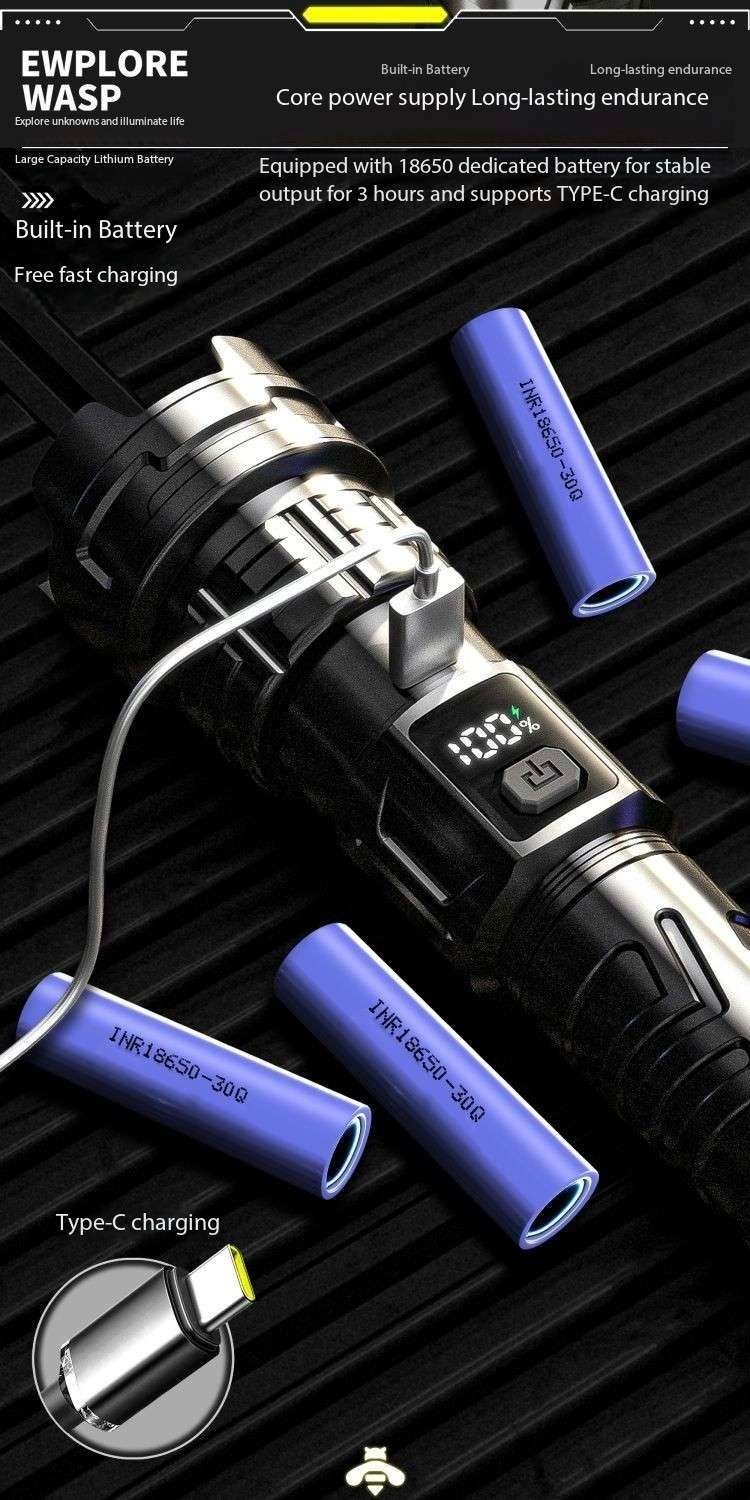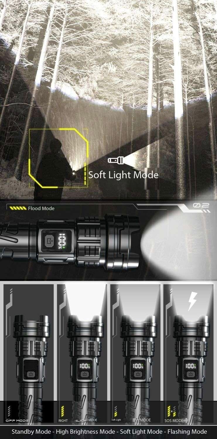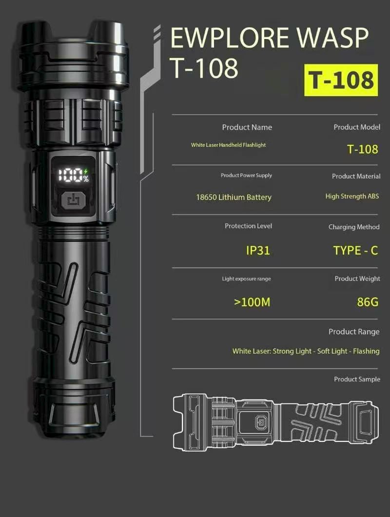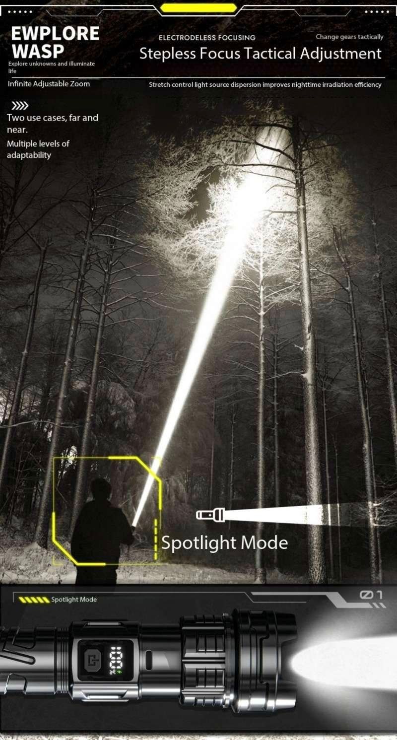 Laser Flashlight 7.0, illuminate your world!This Laser Flashlight 7.0 features a high-brightness white light design, efficient long-range shooting capability, and a high-tech digital LCD display. It supports USB-C fast charging for convenient charging. It also features a high-brightness laser function, smooth zoom adjustment, and a large-capacity battery for long-lasting battery life.