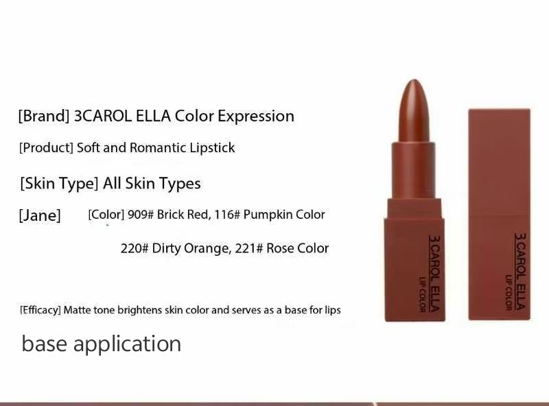 Each shade is a perfect blend of tenderness and allure. 3CAROL ELLA lipstick brings you heart-melting softness and allure. Whether for everyday or special occasions, it's sure to make you look confident and stand out.